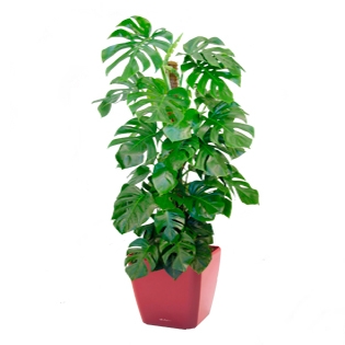 Монстера - быстрорастущая травянистая лиана. Стебли цилиндрические толщиной 6,25—7,5 см с грубыми листовыми шрамами и многочисленными длинными жёсткими воздушными корнями. Листья кожистые, на длинных прямых черешках, овально-сердцевидной формы, длиной 90 см и больше.
